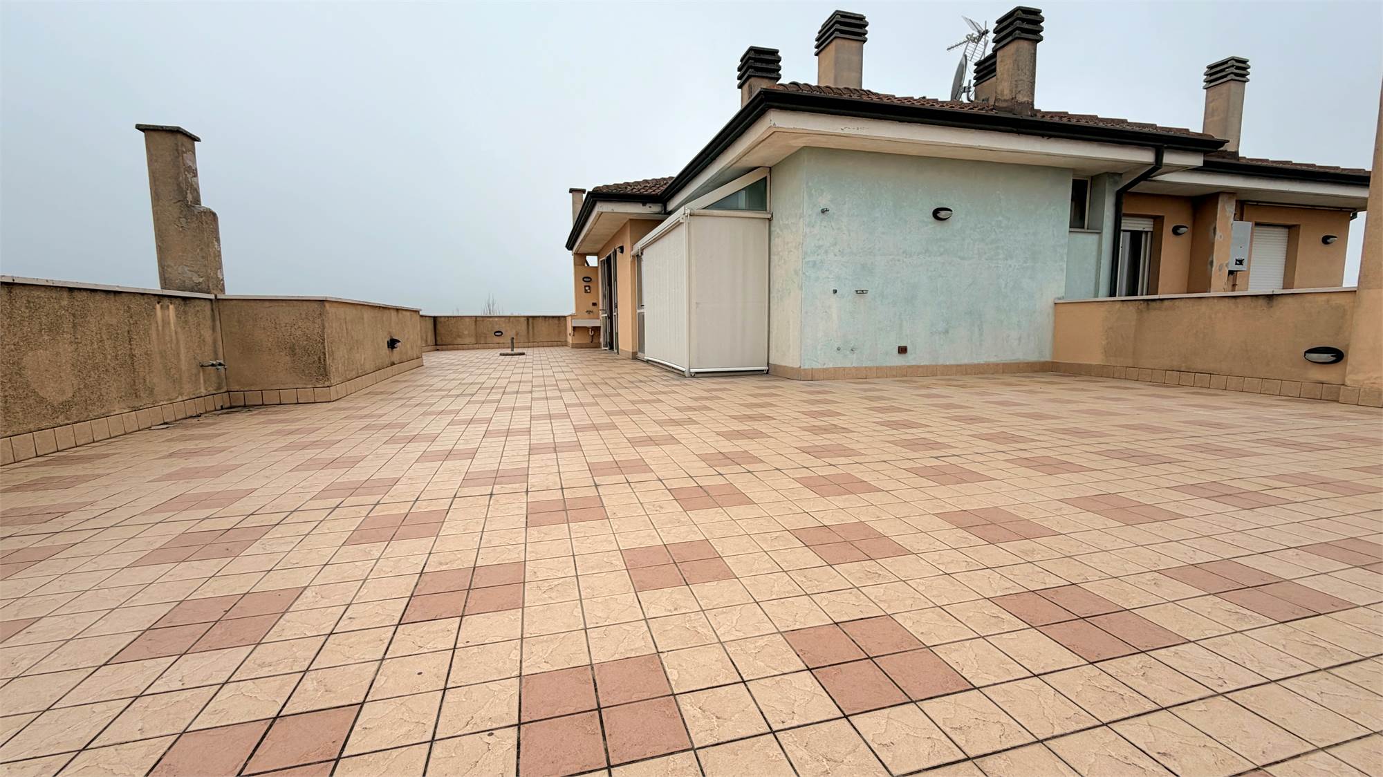 Varcata la soglia, l’ingresso conduce a una zona giorno ampia e luminosa con cucina a vista, pensata per chi ama la convivialità. Il vero protagonista della casa è lo straordinario terrazzo panoramico di 160 mq: una vera e propria oasi sospesa sulla città, perfetta per cene all'aperto, zone relax o un giardino pensile con una vista che toglie il fiato.