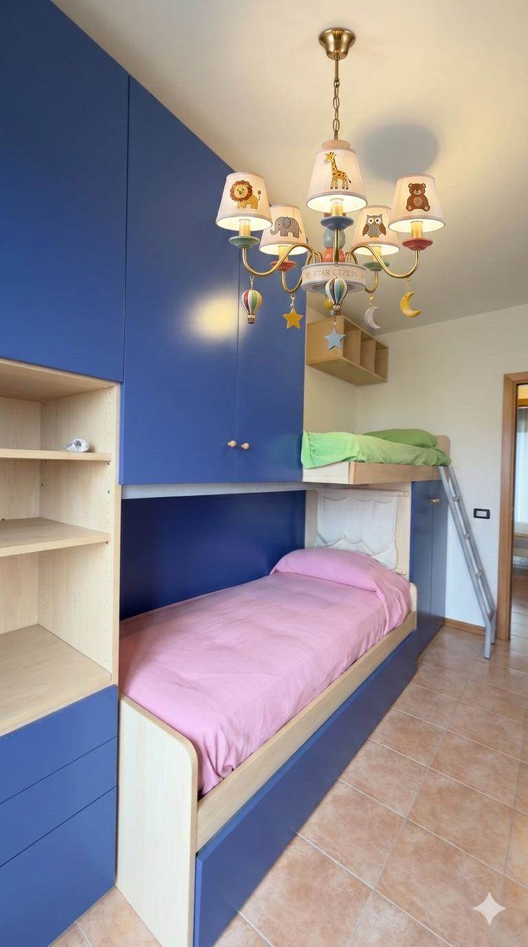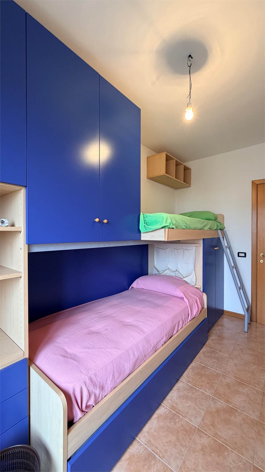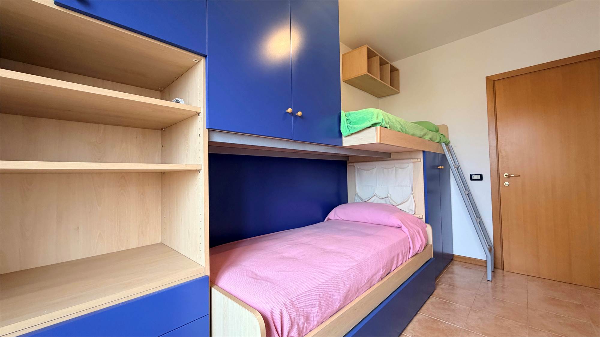 La zona notte, funzionale e ben distribuita, comprende due camere matrimoniali e due camere singole, completate da due bagni entrambi finestrati.